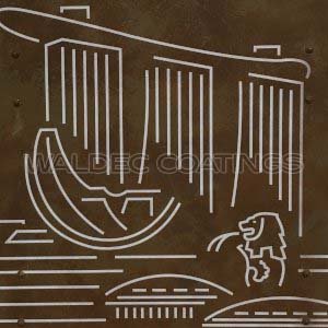 Made of real metals, the aging process is chemically-induced and achieved within minutes, with oxidized Corten rust effect finish of red, brown or yellow, and authentic patinas of green or blue. Can be applied on most types of surfaces, and an ideal finish on furniture, fixtures, accessories, signage, sculptures, reliefs, foam mouldings, etc